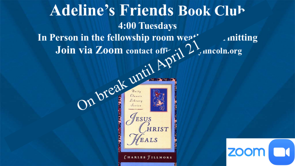 9:00 am Sundays in the library or via Zoom Contact office@unitylincoln.org for the link